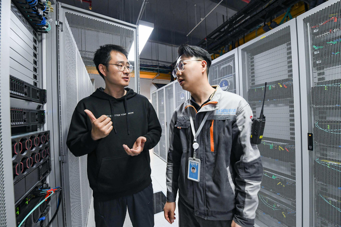 宋祎寓记得,园区建成前,这里还是一片瓜田,“后来西瓜都被我们吃掉了,它就变成了这样的园区。”他说,2022年1月运行后的第一年,要把整个集群的设备搭建起来,团队上百人接受了非常大的压力和挑战。“从运输到搭建,再到连线完成、测试完成,年底时,我们已经将全国3000P左右算力运载回了主基地,完成了上线。”
