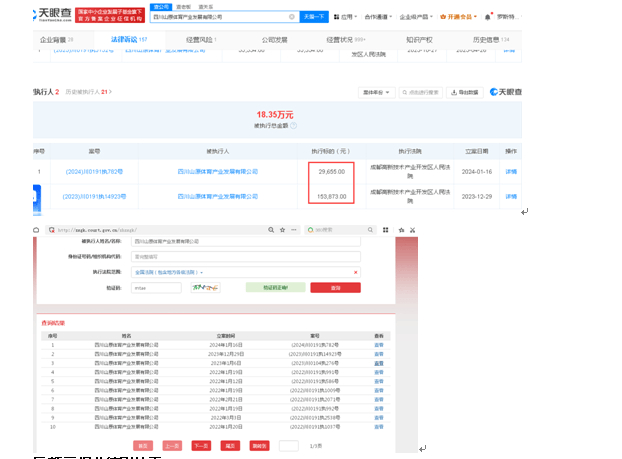 目前,四川山原体育产业发展有限公司有两起被执行人案件,合计被执行金额为18.35万元,不过根据中国执行信息公开网,四川山原体育产业发展有限公司有多起被执行人案件,其中有个别案件已经被列入失信被执行人名单,被限制高消费。