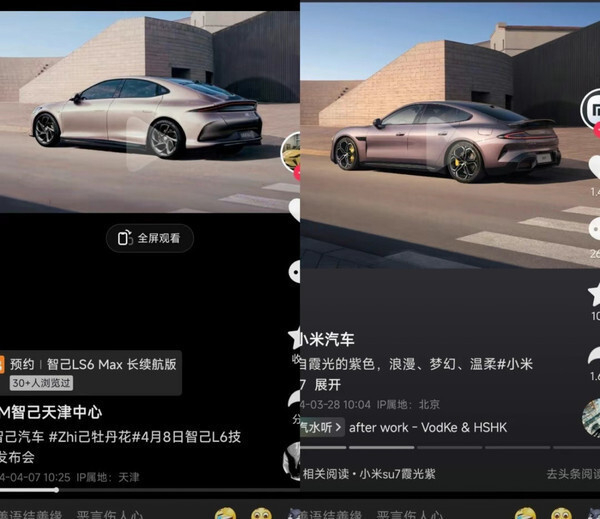 随着事态的进一步发酵,智己又发了一封道歉信,再次公开向小米道歉。不过有网友却挖出了智己在此前宣传海报上的“像素级致敬”。有网友放出了智己和小米在海报上的对比图片。可以发现,除了汽车本身不同以外,在模特、汽车的摆放方式,以及周围的元素等方面,二者几乎是一模一样。这让智己再度卷入了舆论漩涡。