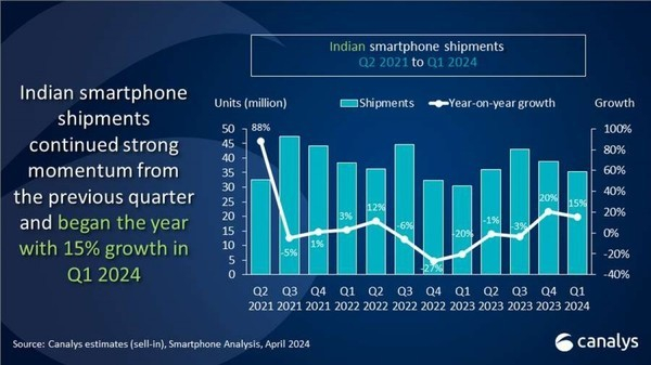 根据最新的印度智能手机市场数据报告,2024年第一季度竞争激烈。三星、小米和vivo在印度市场上表现强劲,但彼此之间的差距很小。