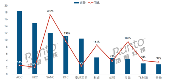 在品牌竞争方面,科睿、灵蛇和飞利浦跻身前十名,而LG、小米和三星则跌出了前十。