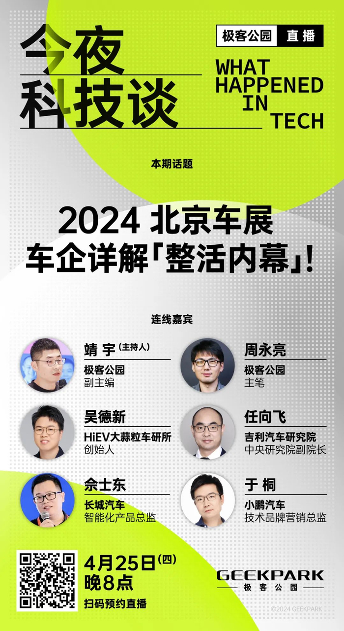 4月25日(周四)20:00,极客公园视频号直播间,敬请锁定「车展联播」!