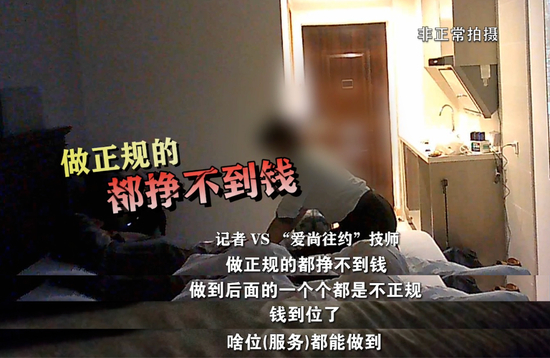 特殊服务在上门按摩行业并不罕见。另一个平台的技师表示,正规的按摩服务扣掉平台的佣金与分成,技师赚不到什么钱,因此她们的核心任务并非按摩而是推销“加钟”,“做正规的都挣不到钱”,做到后面一个个都不正规,钱到位了,啥(服务)都能做到。”