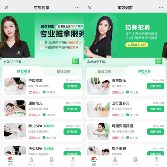 作为上门按摩行业的头部企业,东郊到家想要上市并非异想天开,目前该平台已经形成了相当的规模:在22个人口过千万的城市开通运营中心,拥有1000万以上注册用户和2.5万以上签约技师。
