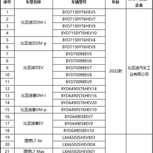 具体汽车车型名单如下: