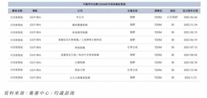 当前除九源基因之外,在司美格鲁肽生物类似药上布局,且产品进入3期临床的厂商并不在少数。CDE官网显示,目前进入三期临床阶段的企业还有华东医药、博唯生物、四环医药、珠海联邦、齐鲁制药、丽珠集团及石药集团等。