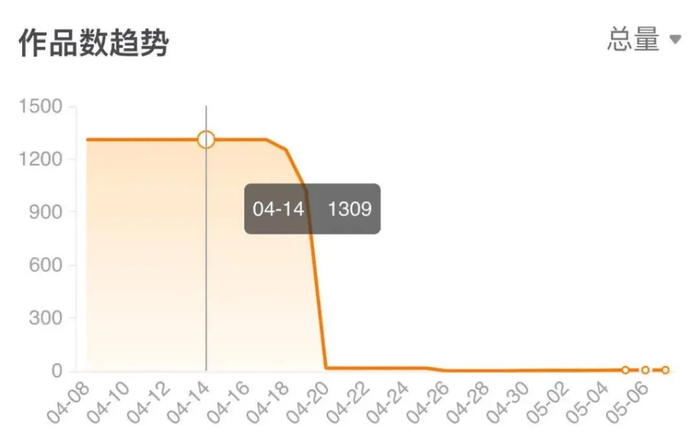 4月14号,账号有短视频1309条,4月20日清空为0,5月1日开始发布第一条。