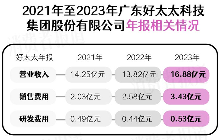 好太太2023年年报显示,营业收入为16.88亿元,同比增长22.16%;净利润为3.27亿元,同比增长49.71%;扣非净利润为3.23亿元,同比增长46.18%。