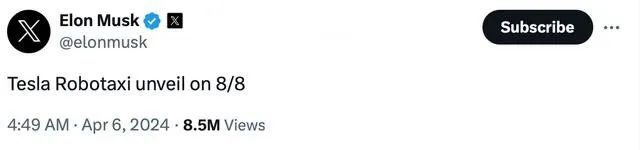 而在4月6日,特斯拉CEO埃隆·马斯克在社交媒体平台X上发文称,特斯拉计划在8月8日推出无人驾驶出租车(robotaxi)。从某种意义上来说,这也引领了网约车后续的发展方向。
