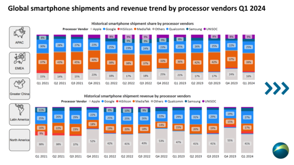 联发科2024年Q1仍为智能手机处理器第一!份额39%