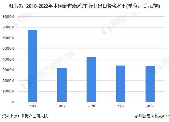 从出口价格水平来看,根据前文对新能源汽车的出口金额以及出口数量进行的统计,可以初步测算近年来中国新能源汽车出口平均价格。可以看出,2018-2022年,我国新能源汽车出口均价水平历经大幅下降后,稳定在3-4万美元区间,表明我国新能源汽车海外市场仍然以低端车型为主。