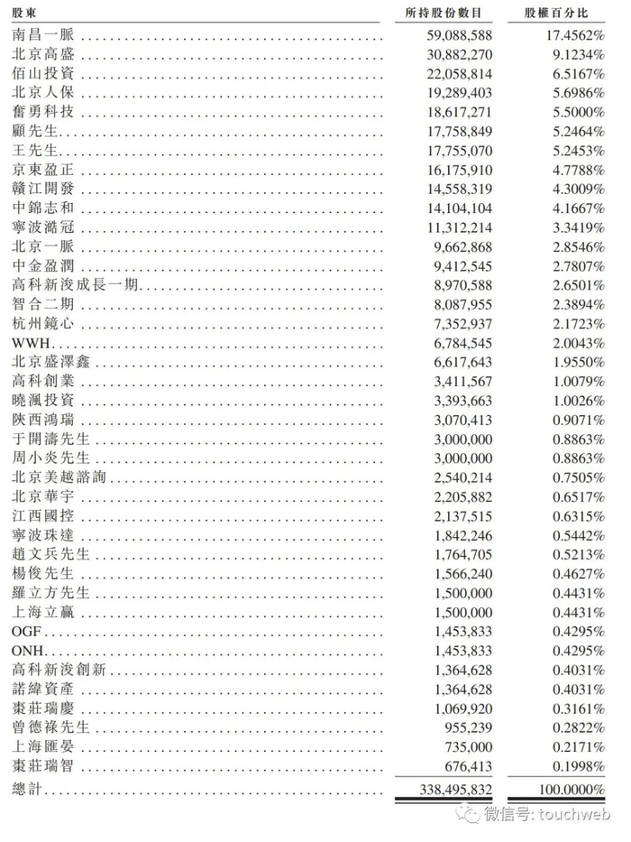 北京美越咨询持股为0.7505%,北京华宇持股为0.6517%,江西国控持股为0.6315%,宁波珠达持股为0.5442%,赵文兵持股为0.5213%,杨俊持股为0.4627%,罗立方、上海立赢分别持股为0.4431%,OGF、ONH分别持股为0.4295%,高科新浚创新、诺纬资产分别持股为0.4031%。