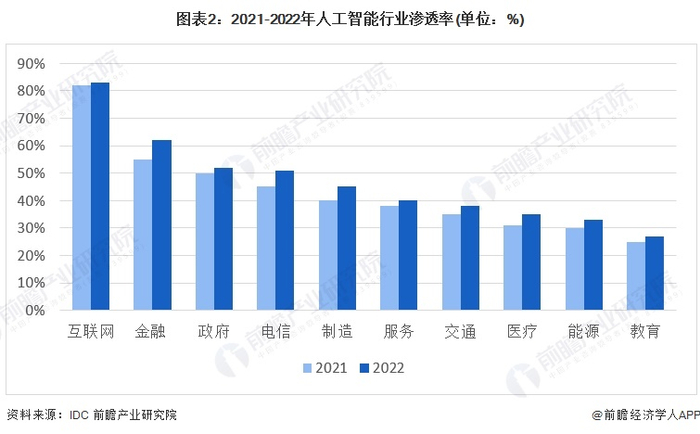 人工智能在互联网行来渗透率最高