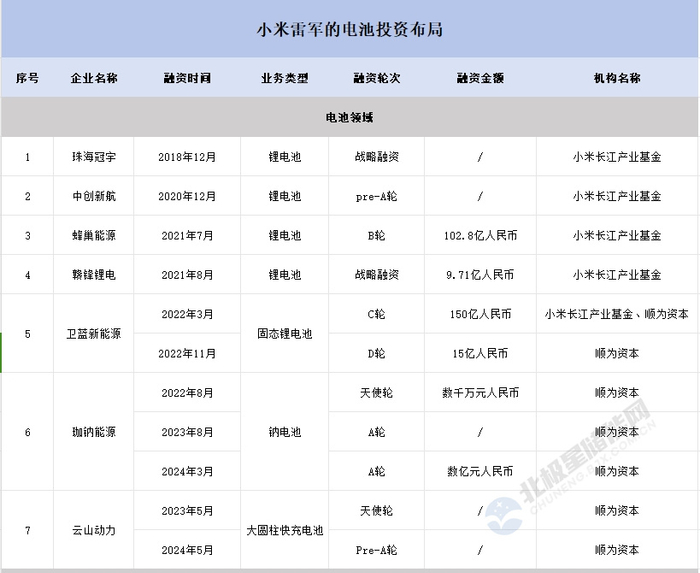 雷军又投了一家电池企业!一图了解小米的电池布局!