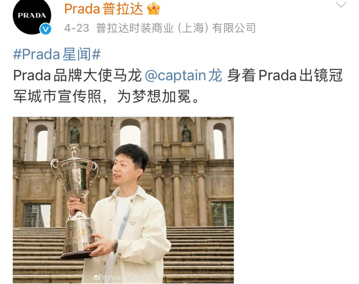 这并非其与中国运动员第一次达成合作,此前Prada已邀请乒乓球运动员马龙和篮球运动员杨舒予任品牌大使。