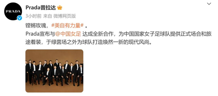 2023年7月10日Prada官宣与中国国家女子足球队成为合作伙伴。