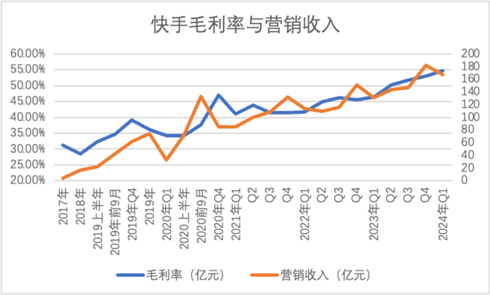 2020年之后快手营销收入与毛利率双双上扬,经营效率的改善在此得到验证,这也是业务经营重心调整的结果。