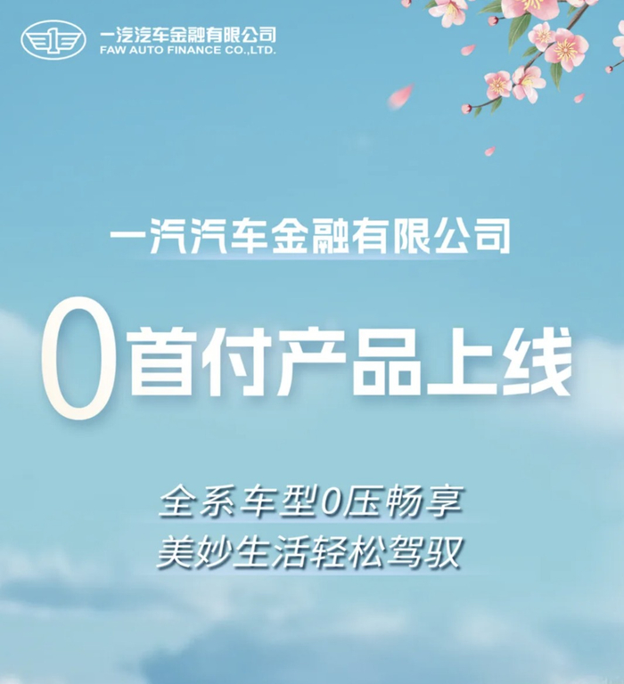4月17日,中国一汽集团官网发布消息,为更好支持集团主业,创新用足金融工具,促进汽车消费,在中国人民银行、金融监管总局《关于调整汽车贷款有关政策的通知》背景下,4月16日,一汽汽车金融有限公司全面调整汽车贷款首付比例,行业领先推出0首付金融产品,持续为客户创造价值。
