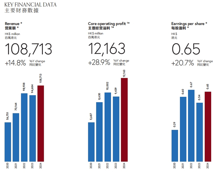 周大福:2024财年营业额同比增加14.8%至1087.13亿港元