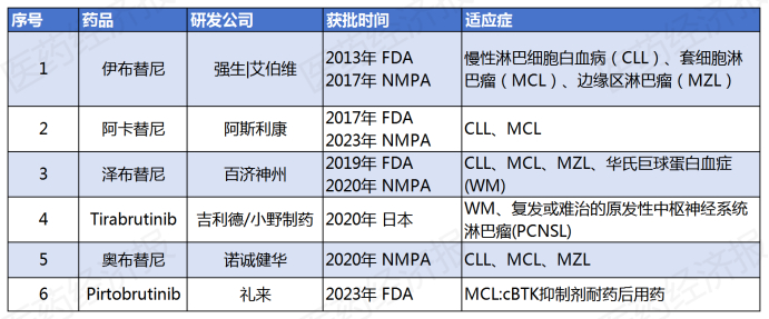 获批上市的6款BTK抑制剂