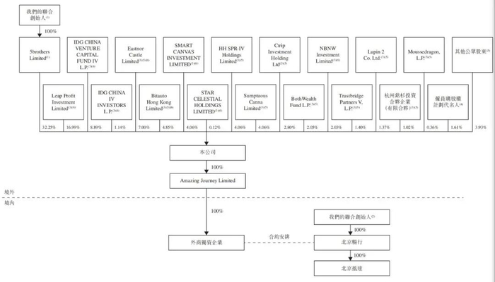 IPO后,宋中杰、李金龙、朱敏、段剑波及李跃军5位联合创始人通过5brothersLimited持有公司32.25%;