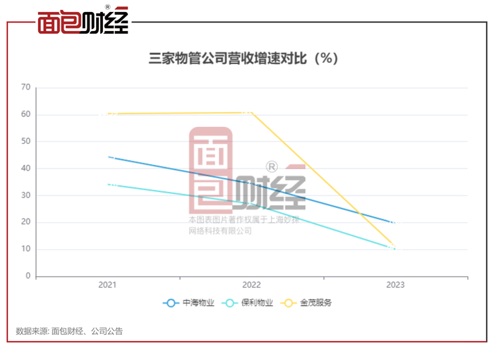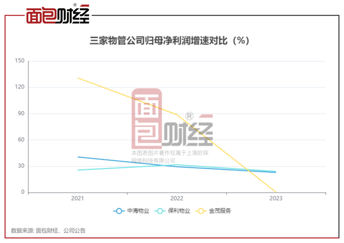 截至2023年底,保利物业在管面积7.20亿平方米,同比增长24.91%;中海物业在管面积为4.0亿平方米,较去年同期的3.2亿平方米同比增长了25.4%;金茂服务2023年末在管面积达到8420万平方米,同比增长48%。