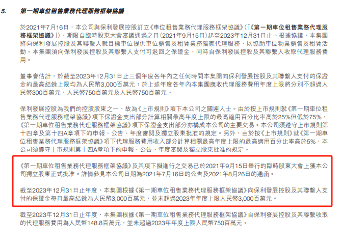 值得关注的是,2023年保利物业年报持续关联交易中,允许保利物业向关联方支付保证金、存放存款。