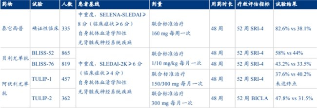 如图所示,在已上市的生物制剂中,泰它西普的临床数据表现最为优异。