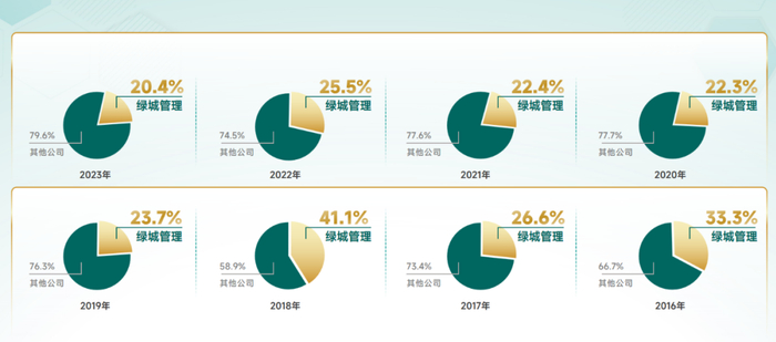 ━━━━深化优势,引领代建行业发展近年来,随着房地产逐渐向发展新模式转型,代建作为新模式的代表,迎来了飞速发展。2023年,代建行业新拓总建筑面积达1.7亿平方米,宣布布局代建赛道的品牌房企已接近百家。在此背景下,作为行业先行者、引领者的绿城管理,一方面敏锐捕捉行业快速发展期带来的增量机遇,一方面在日趋激烈的市场竞争中积极迎战,以连续8年代建行业市场占有率超20%的成绩,蝉联行业第一身位。