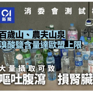 近日,香港消费者委员会(下称“香港消委会”)发布的一则饮用水检测报告称,农夫山泉和百岁山产品抽检样本中溴酸盐含量达到欧盟标准上限。