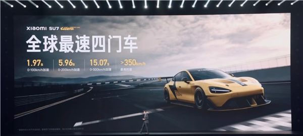 据悉,小米SU7 Ultra原型车的零百加速,含起步速度只要1.97秒,0-200km/h只要5.96秒,最高时速能超过350km/h以上。
