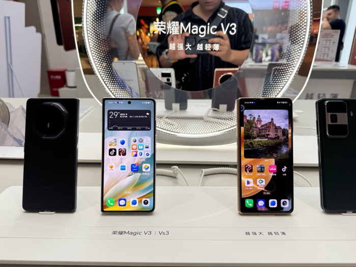 荣耀线下门店销售告诉财联社记者:“我们店里最畅销的机型是Magic V3s,它和Magic V Flip的差价真的不算大,况且它的配置要高很多。买给您对象,屏幕更大,刷小红书更爽,而且也兼顾商务属性。”
