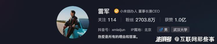 仅仅在抖音平台,雷军半年就涨粉超1000万,最夸张时,1天增粉近200万,可以说创造了涨粉奇迹,目前雷军总粉丝量已突破2700万大关,力压董宇辉,成了最炙手可热的“网红”!