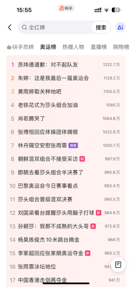 从各种热搜、趣味挑战到奥运冠军们的冷热知识分享,快手《跟着冠军游巴黎》为老铁们不仅带来了精彩的比赛内容,也带来了无比的欢乐。目前,巴黎奥运会正在火热进行中,作为本届奥运会持权转播商,快手还将围绕赛事、内容、互动玩法等多维度全方位发力,携7亿老铁一起“上快手,追奥运”,共赴这场浪漫奥运之约。