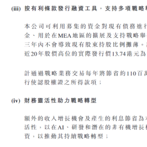 (iii) 按有利条款发行融资工具,支持多项战略举措
