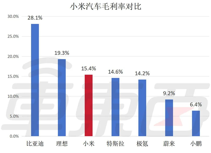 ▲“小米卖一台车亏6万多”登上热搜前5雷军评价,这一算法既对也不对,他认为小米汽车首份财报业绩非常不错,肯定是挤上了牌桌。雷军还回应用户说,小米汽车到了一定规模,很容易打平,大家不需要为此焦虑。现在看来,小米汽车在交付首季度就实现正向毛利率还是很有实力的。小米汽车在发布3个月时间内实现了2.7万辆的销量,单车平均售价为22.86万元。而小米的智能电动汽车等创新业务实现营收64亿元,经调整净亏损为18亿元,毛利率为15.4%,已经超过同期特斯拉和绝大多数中国新造车。