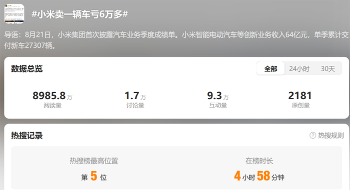 01.“小米卖一台车亏6万多”上热搜