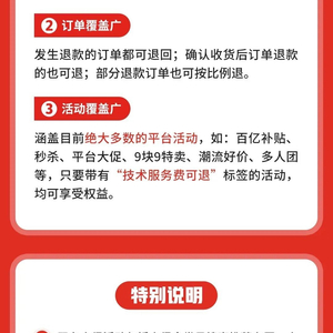 商家在参与这些活动时,若订单发生退款,将能按退款比例享受基础技术服务费的返还。