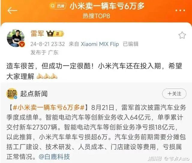 这种情况下,小米汽车的第二款产品什么时候上市,也逐渐成为外界关注的热点。虽说小米SU7“卖一台亏6万”,但雷军说了“造车很苦,但成功一定很酷”,在造车这条路上,小米和雷军推出第二台车已经势在必行。