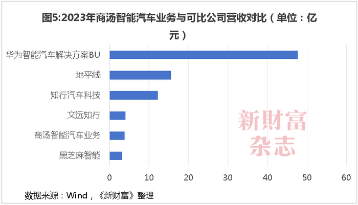 绝影智能在2023年度实现3.8亿元营收,在智能汽车解决方案供应商赛道中,与黑芝麻智能(02533.HK)、文远知行(WRD.O)相近(图5),前者已于2024年8月登陆港股,市值约为150亿港元,后者则已向美股递交招股书。此外,知行汽车科技(01274.HK)、地平线在2023年的营收均高于10亿元,数倍于绝影智能,而同样定位于“智能汽车核心供应商”的华为智能汽车解决方案BU,同期收入已达到47亿元,体量远高于绝影智能。