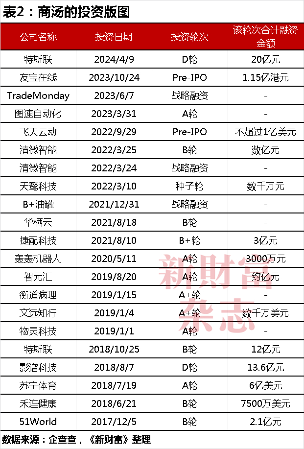 根据企查查数据,在商汤所投出的项目中,已上市企业有飞天云动(06610.HK)、友宝在线(02429.HK)。