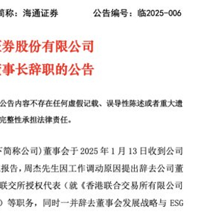 海通证券董事长辞职