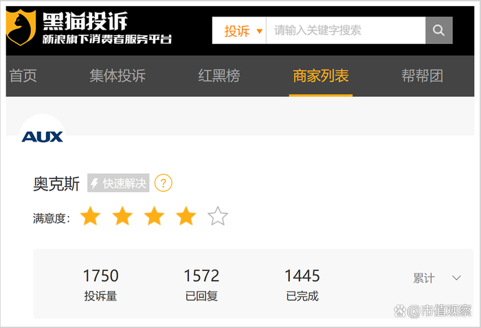 同时,还有多位消费者反映奥克斯空调存在质量和售后问题,在黑猫投诉平台上有关奥克斯的投诉超1700条,其中空调方面的问题包括不制热、售后服务差、安装延误、噪音大等。
