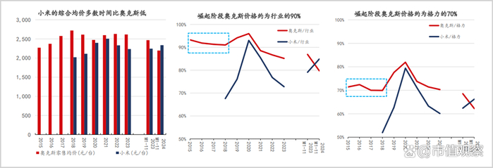 据 国联证券 研究,小米74%的零售量来自2400元以下价格带,远高于行业整体的53%数据,且自2018年以来多数年份的平均售价要低于奥克斯。