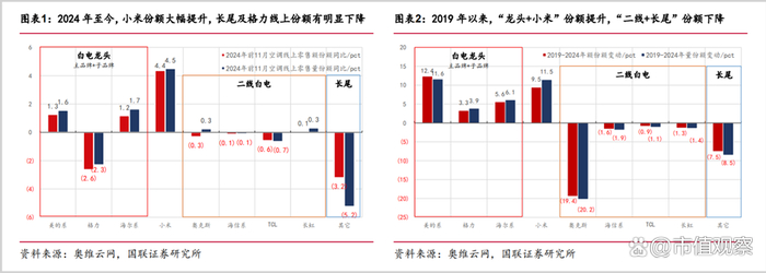 在国内空调市场规模增长放缓,巨头间博弈激烈的环境下,小米凭借超高性价比、AIoT生态圈搭建及良好的用户体验快速崛起,并取代后者成为新的“价格杀手”。