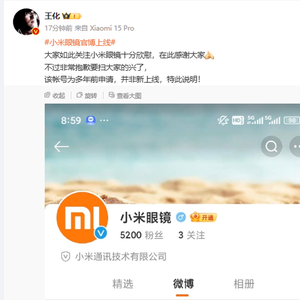 小米眼镜官方微博新上线?小米集团公关部总经理王化回应:账号为多年前申请