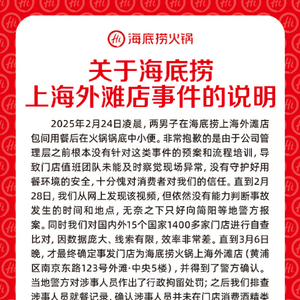 3月12日,海底捞发布关于上海外滩店事件的说明,对此前引发热议的“顾客朝海底捞锅底小便”事件进行了更详细地说明,多个相关话题冲上当天微博热搜。