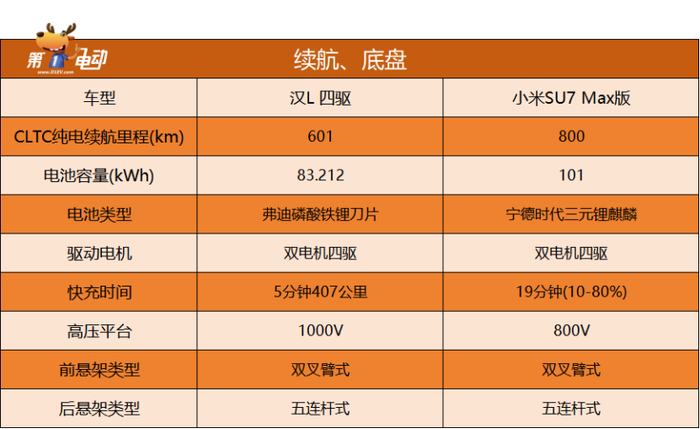 汉L充电更快、小米SU7续航更长