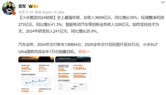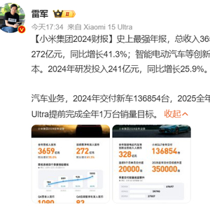 小米2024年财报公布!雷军称其“史上最强”