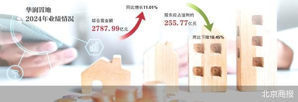 北京商报记者梳理发现,2020—2023年华润置地综合营业额分别为1795.9亿元、2121亿元、2070.6亿元、2511.4亿元,2024年创下近5年新高。然而,与规模扩张形成鲜明反差的是,华润置地的盈利能力却持续下降。年报显示,2024年华润置地股东应占溢利约为255.77亿元,同比下降18.45%。